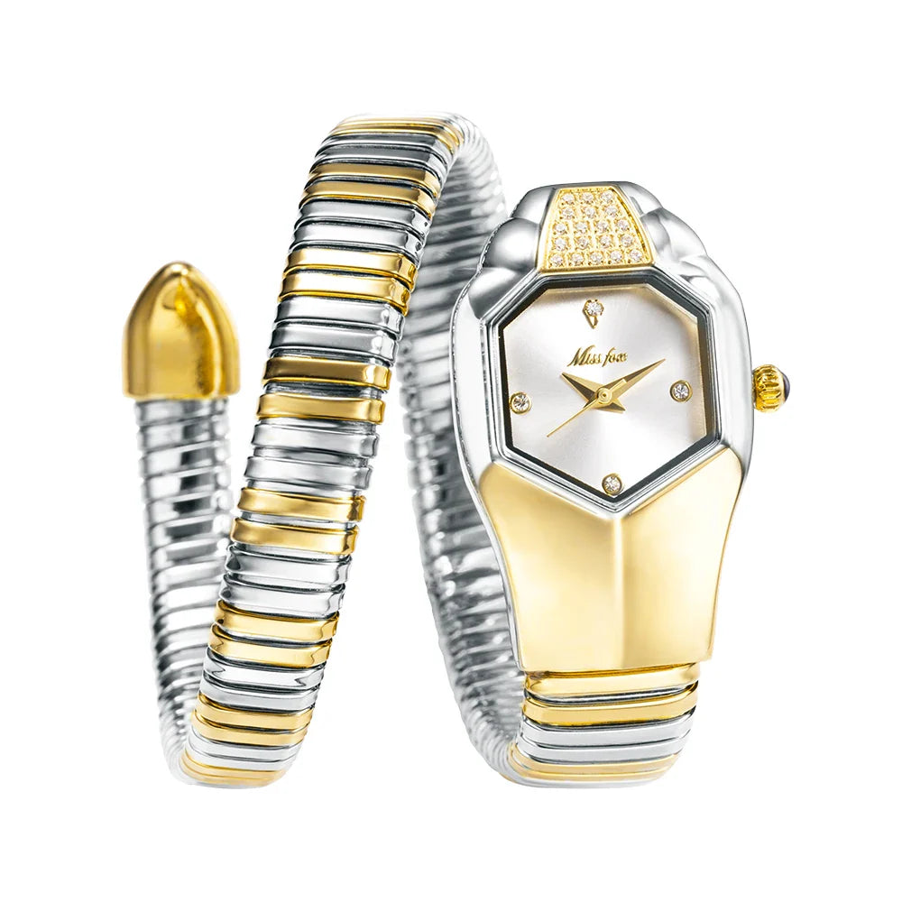 This sculpted timepiece wraps the wrist in a bold, serpent-inspired form. Made from stainless steel with anti-scratch detailing and a flexible fit, it’s a refined expression of strength and elegance.